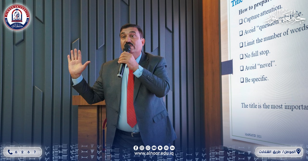 بإشراف وحضور الاستاذ الدكتور سعد الطعان عميد كلية الهندسة في جامعة النور نظّم قسم هندسة النفط صباح يوم السبت الموافق 14 شباط 2026 ورشة علمية متخصصة بعنوان أسلوب كتابة الورقة البحثية ومهاراتها،